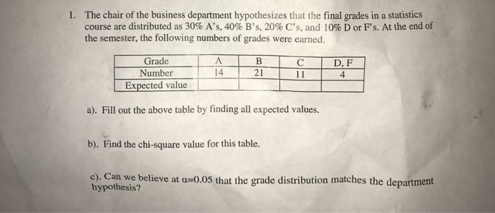 Solved 1 The Chair Of The Business Department Hypothesiz