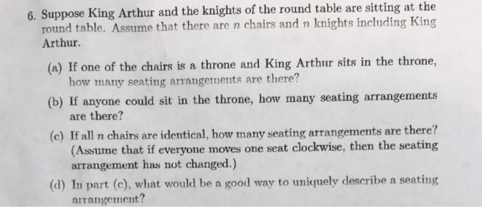 Solved Suppose King Arthur And The Knights Of The Round T